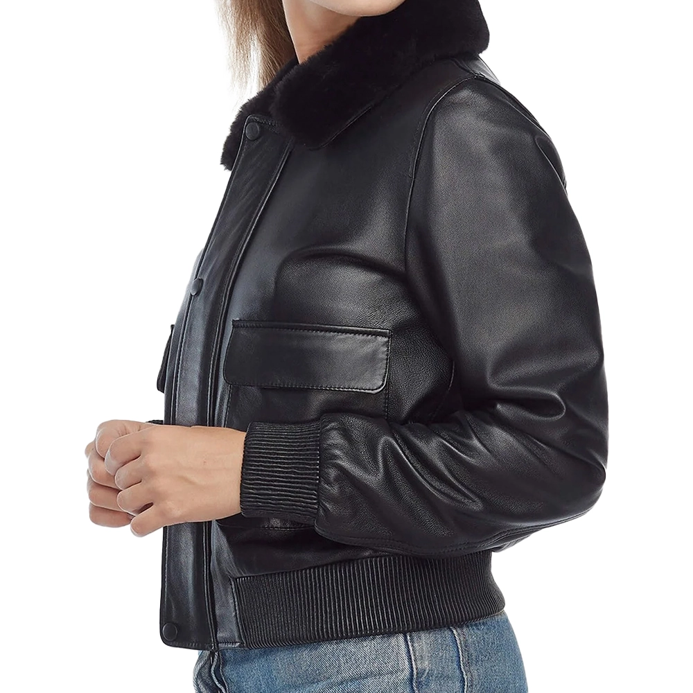 Velvro Leather – VL-177 Anne Black Bomber Leather jacket with Fast Shipping and 30 Days Easy Return Warranty.