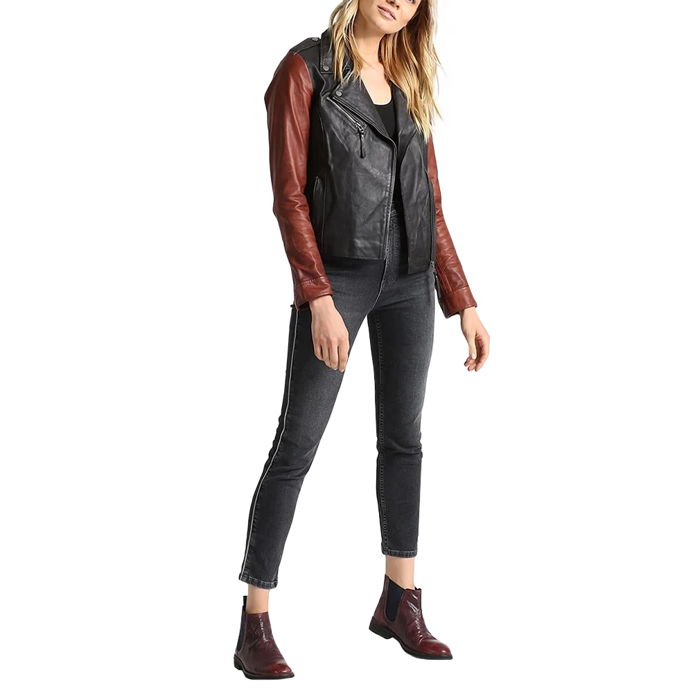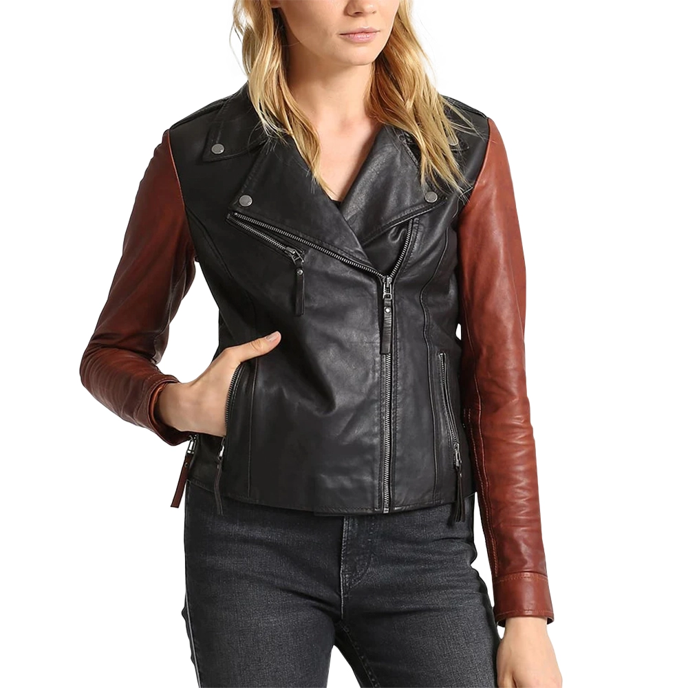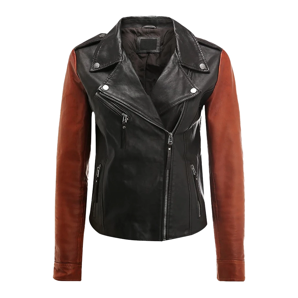 Velvro Leather – VL-173 Black and Brown Moto Leather Jacket For Women with Fast Shipping and 30 Days Easy Return Warranty.