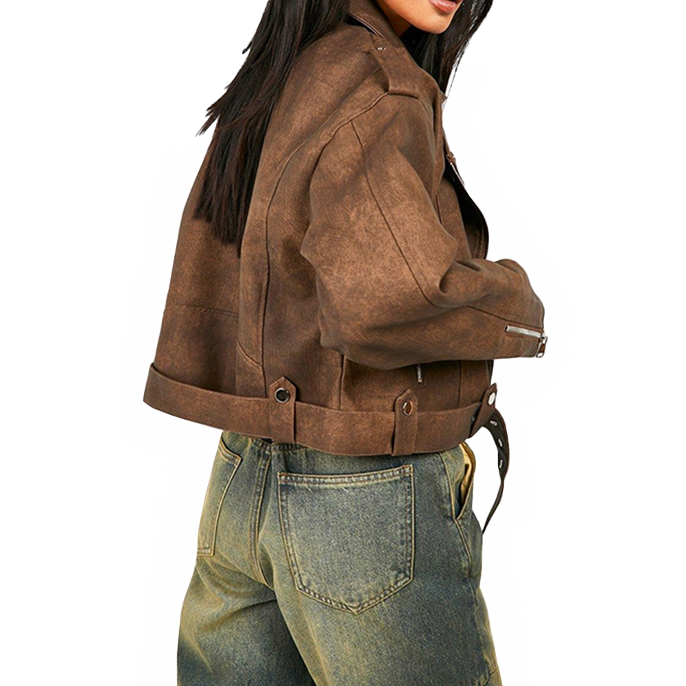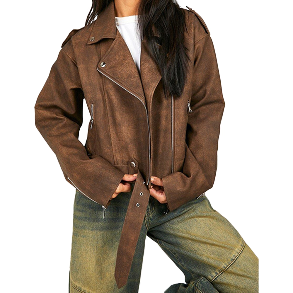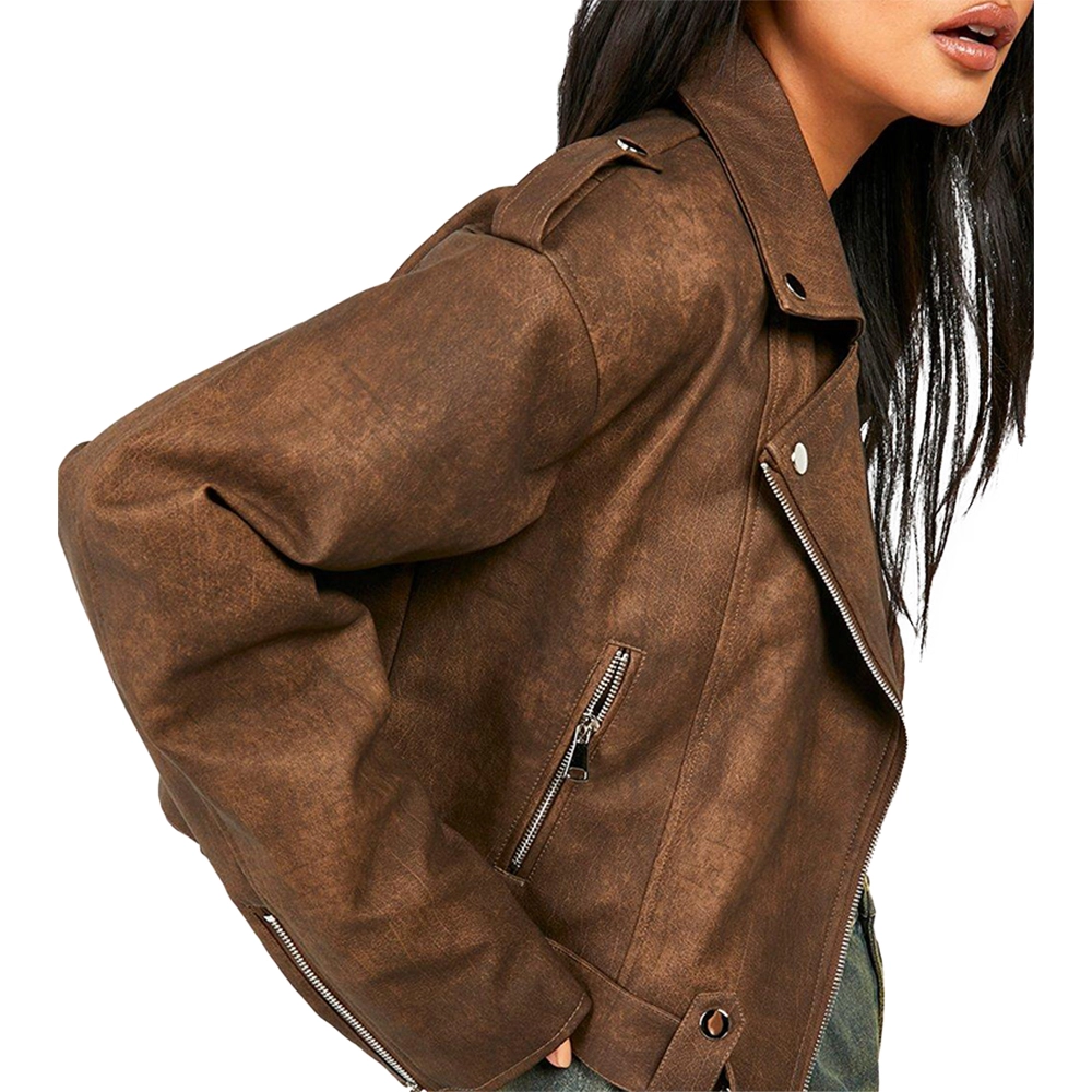Velvro Leather – VL-056 Brown Biker Leather Jacket for Women with Fast Shipping and 30 Days Easy Return Warranty.