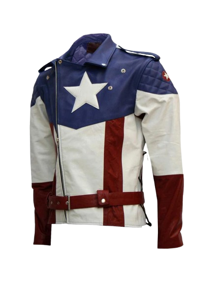 Velvro Leather – VL-302 Captain America Multi Colored Jacket with Fast Shipping and 30 Days Easy Return Warranty.