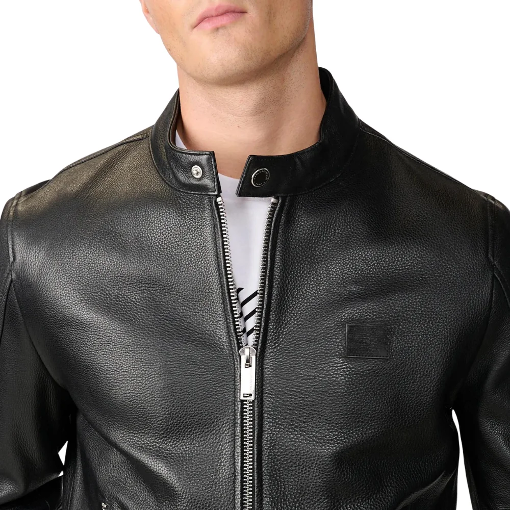 Velvro Leather – VL-256 David Black Cafe Racer Leather Jacket with Fast Shipping and 30 Days Easy Return Warranty.