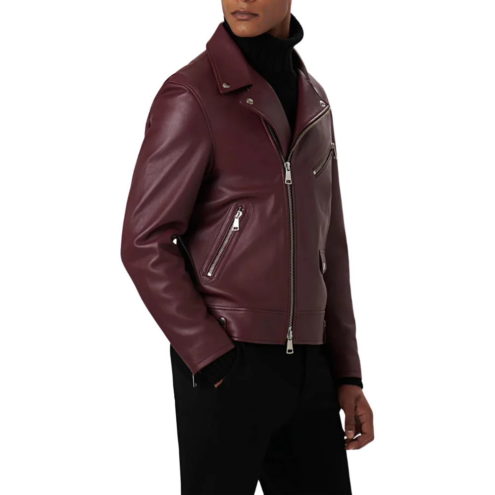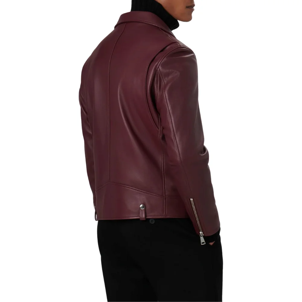 Velvro Leather – VL-205 Edward Maroon Biker Leather Jacket with Fast Shipping and 30 Days Easy Return Warranty.