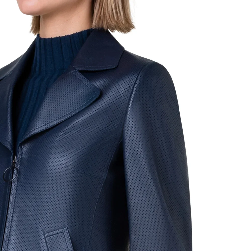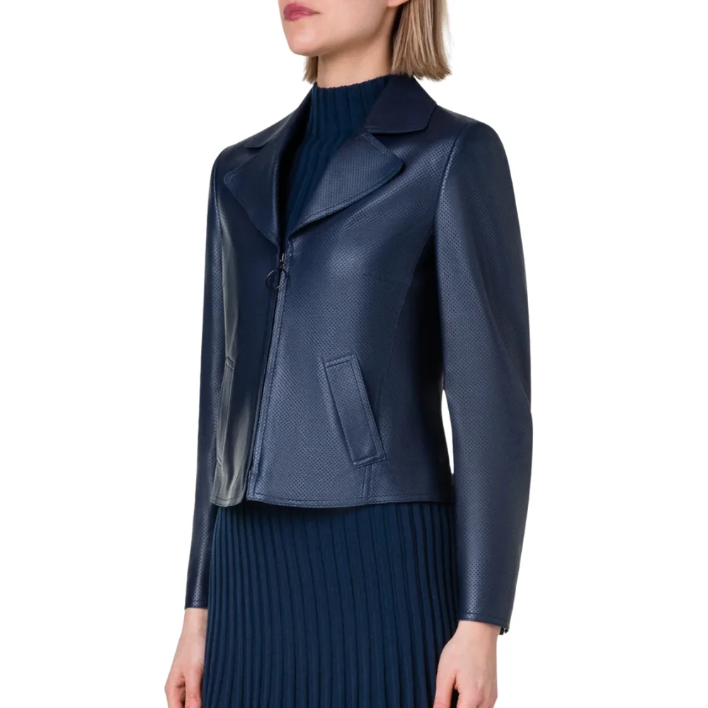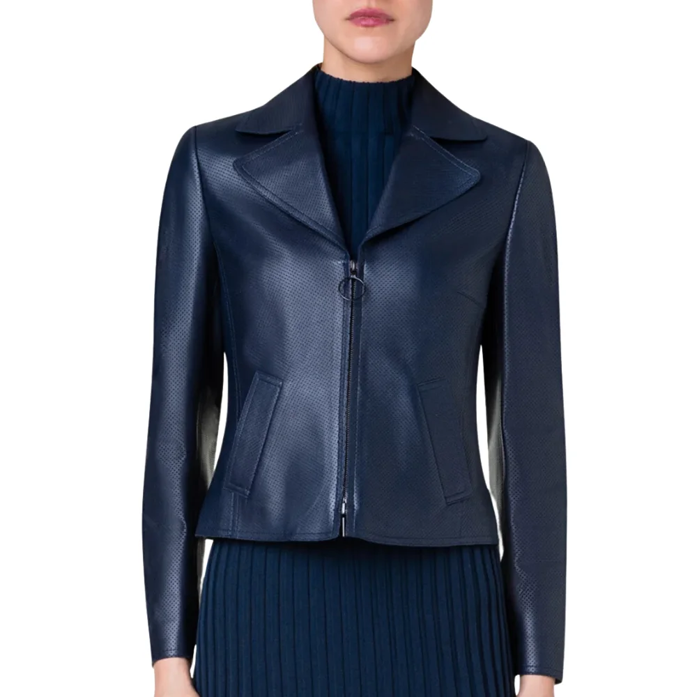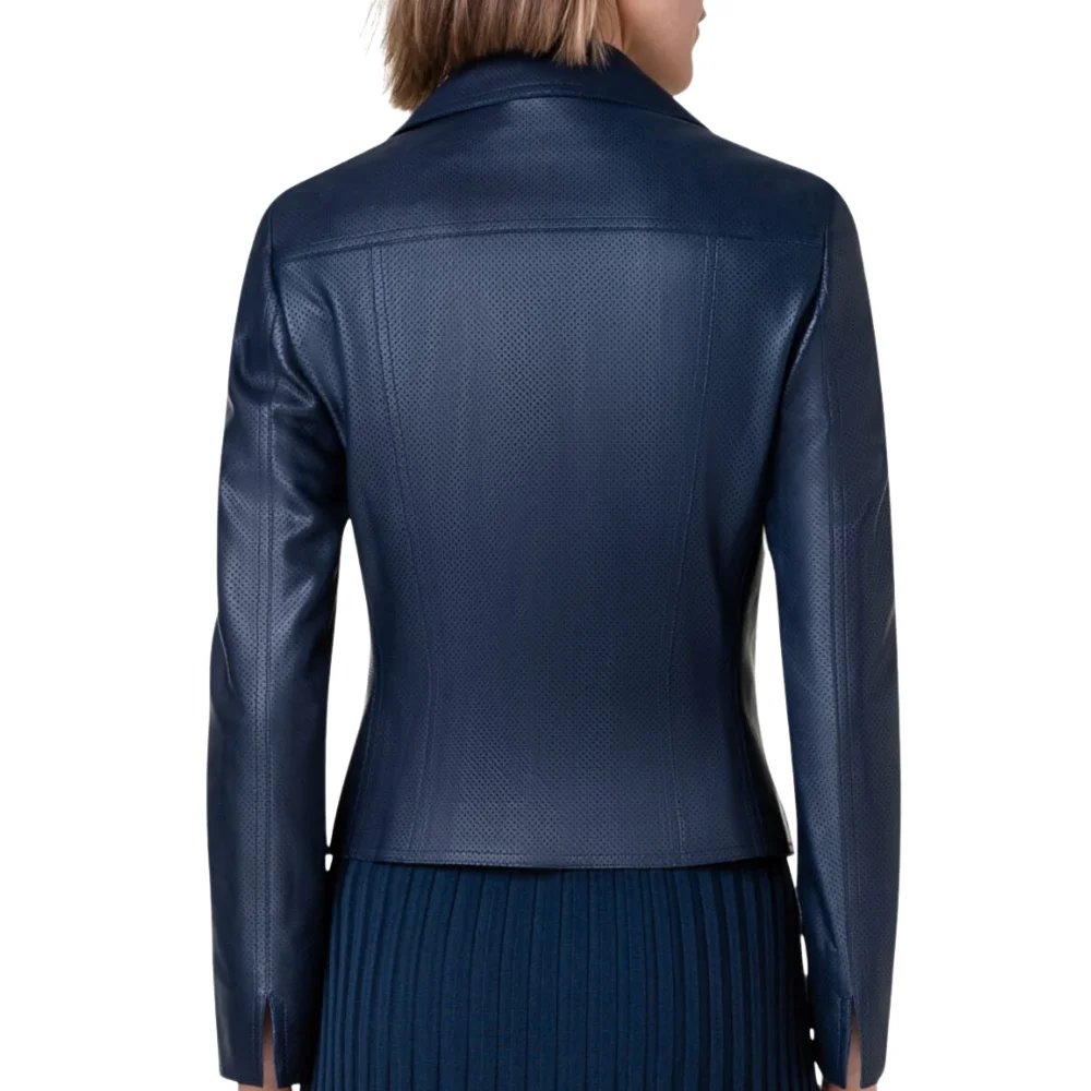 Velvro Leather – VL-070 Falcon Women’s Blue Biker Style Leather Jacket with Fast Shipping and 30 Days Easy Return Warranty.