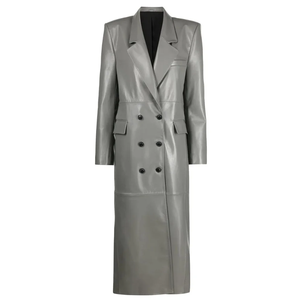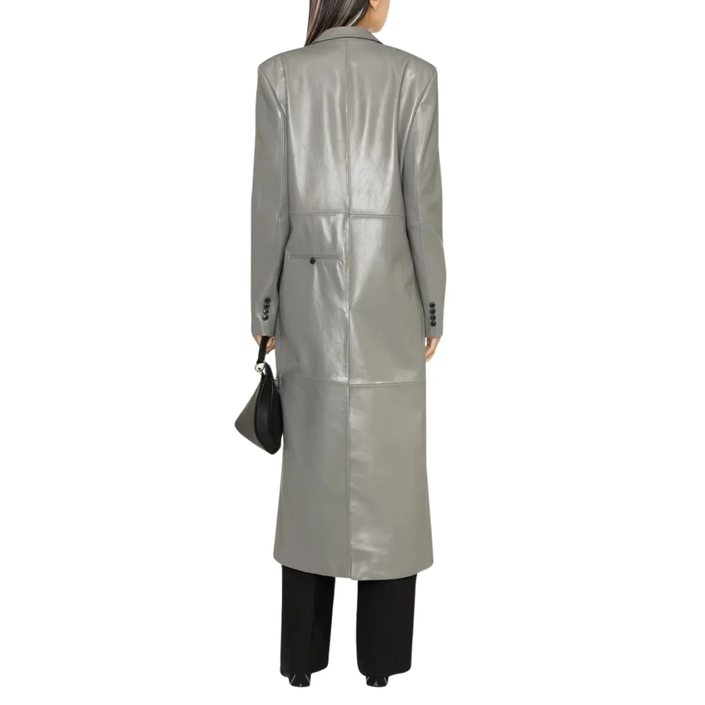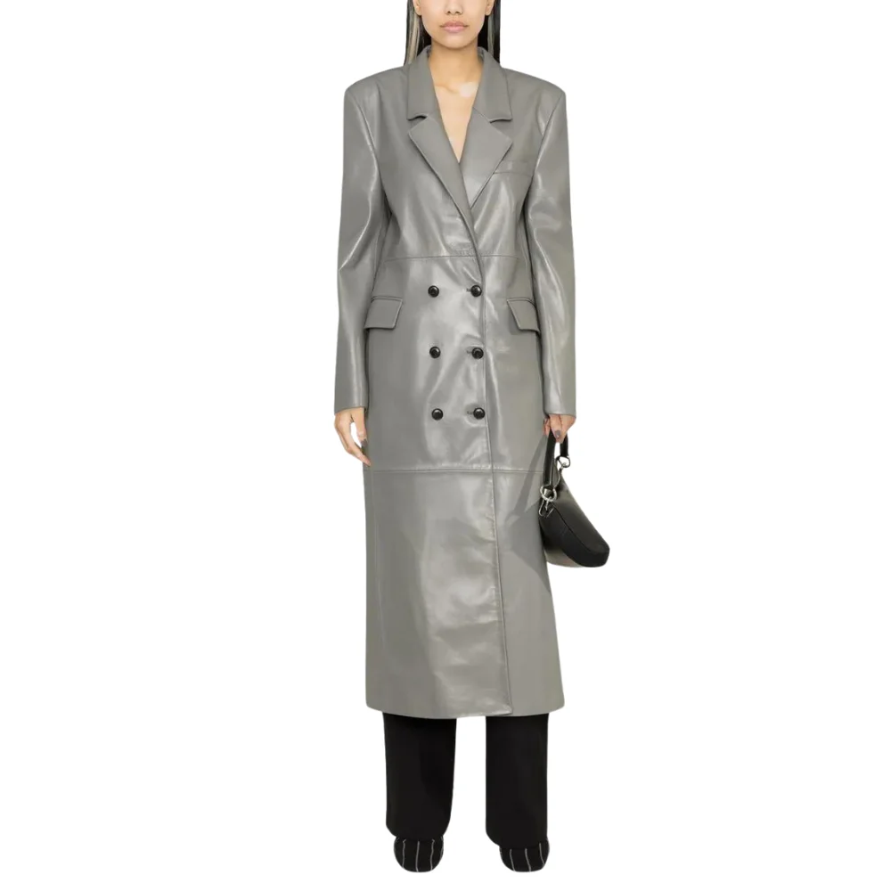 Velvro Leather – VL-147 Karen Grey Double Breasted Women’s Leather Trench Coat with Fast Shipping and 30 Days Easy Return Warranty.