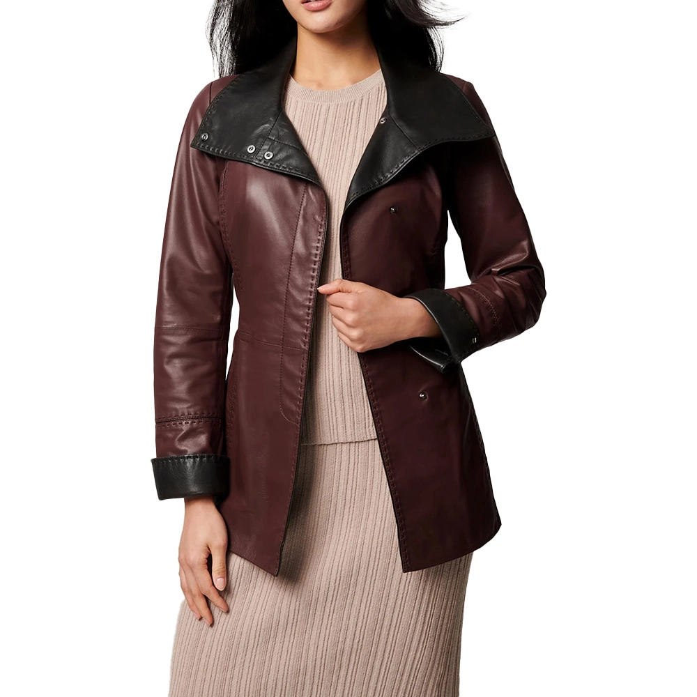Velvro Leather – VL-143 Luna Wide Collar Brown Leather Blazer Coat with Fast Shipping and 30 Days Easy Return Warranty.