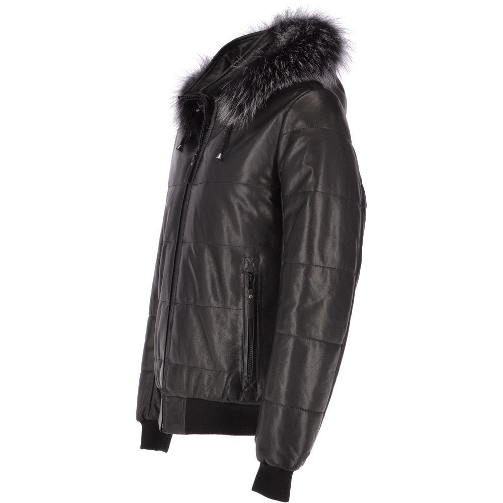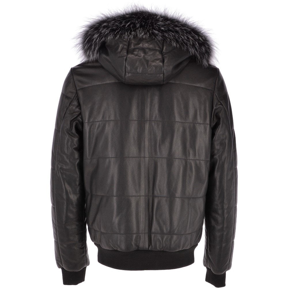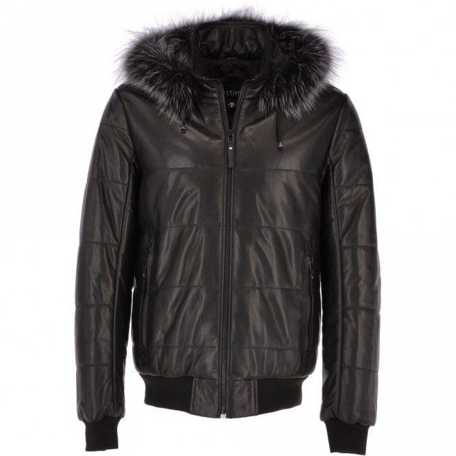 Men’s Black Detachable Hooded Leather Bomber Jacket