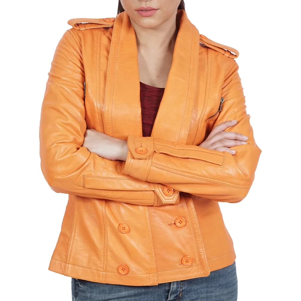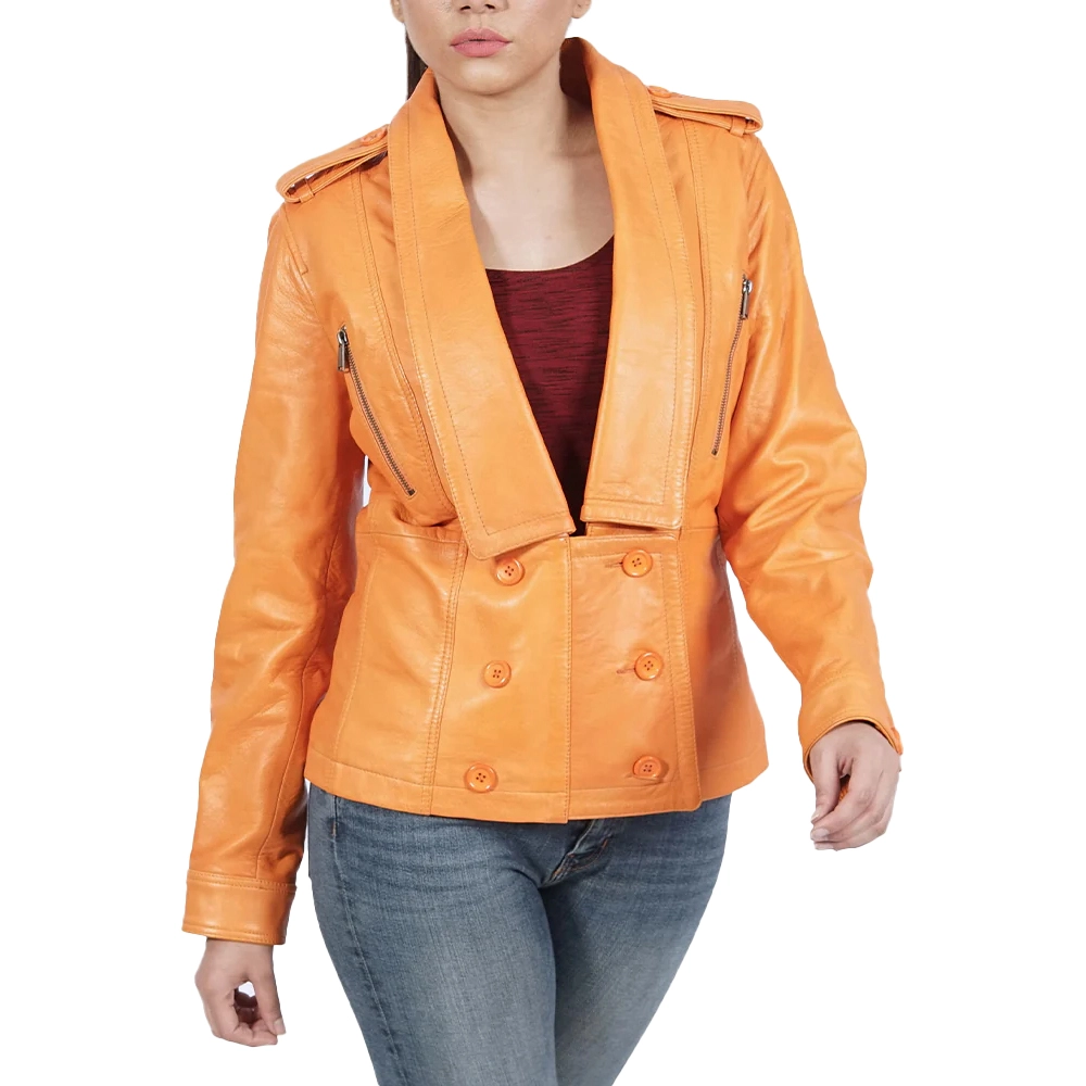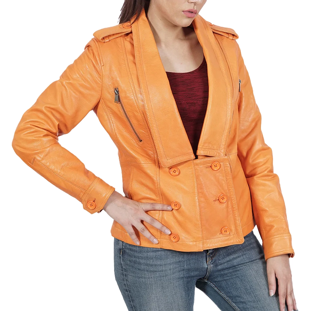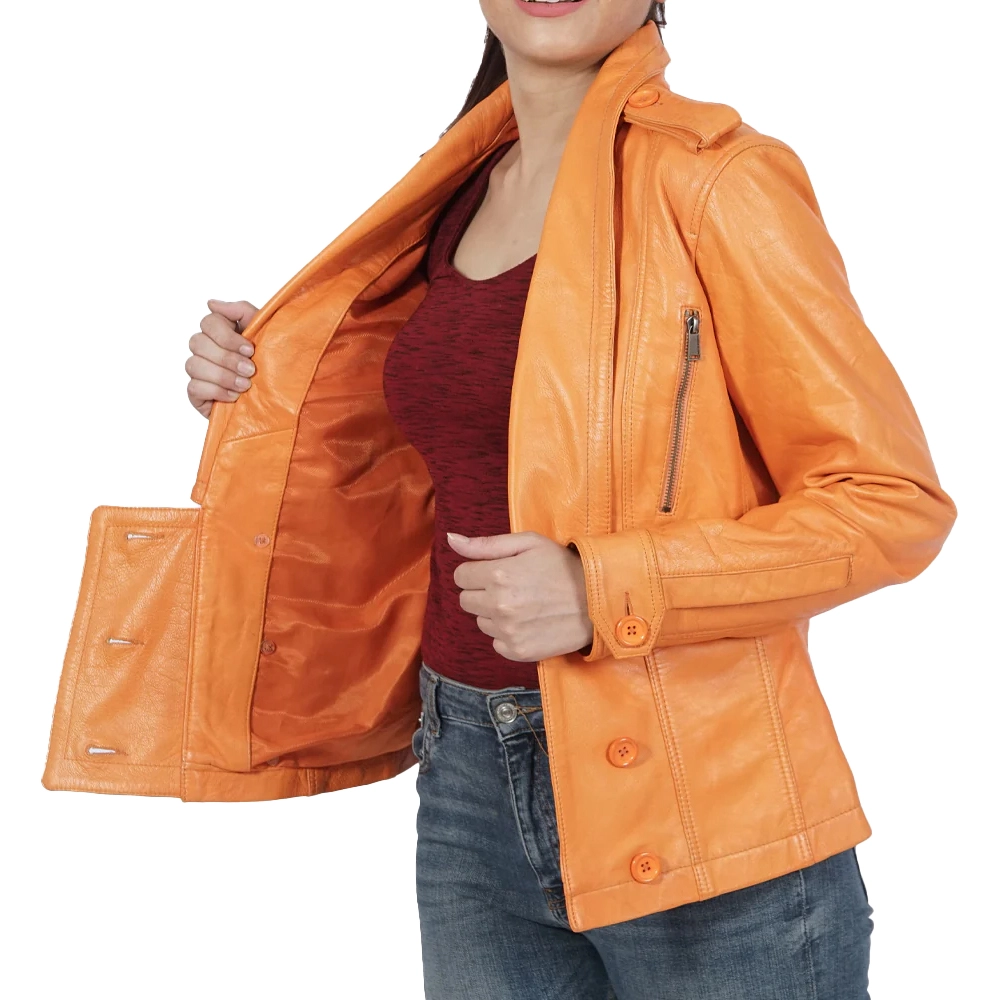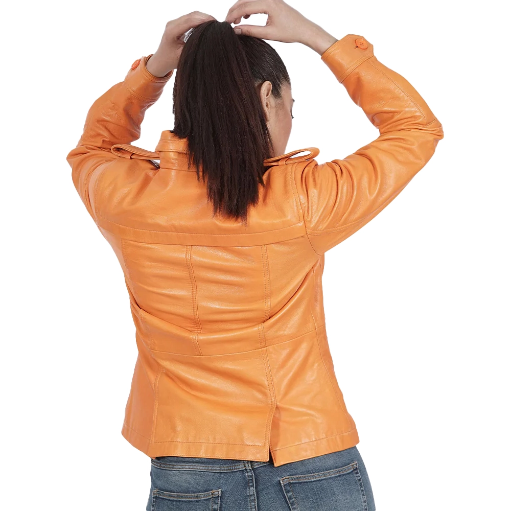 Velvro Leather – VL-138 Orange Leather Jacket Blazer for Women with Fast Shipping and 30 Days Easy Return Warranty.