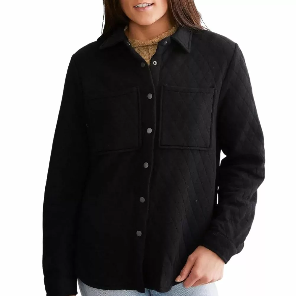 Velvro Leather – VL-135 Quilted Black Wool Shacket for Women with Fast Shipping and 30 Days Easy Return Warranty.