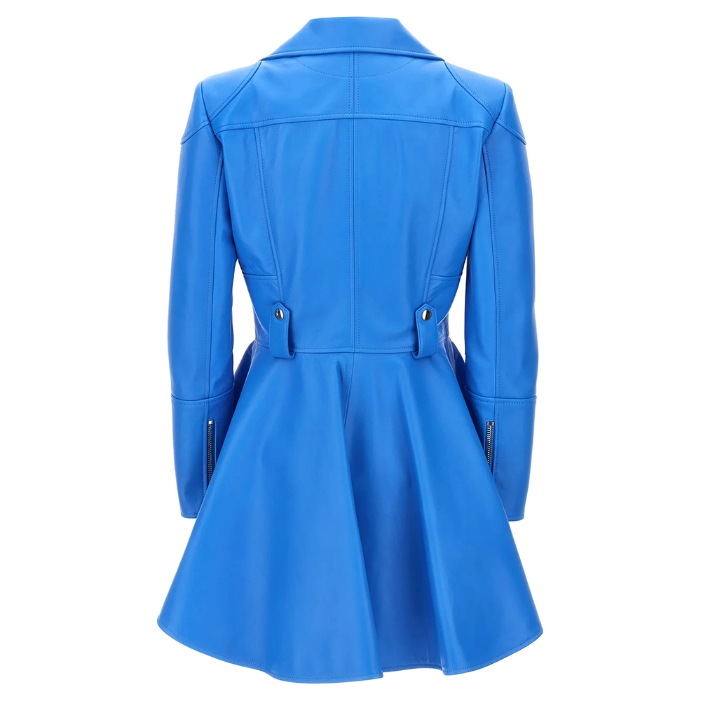 Velvro Leather – VL-126 Sophia Blue Biker Peplum Leather Jacket with Fast Shipping and 30 Days Easy Return Warranty.