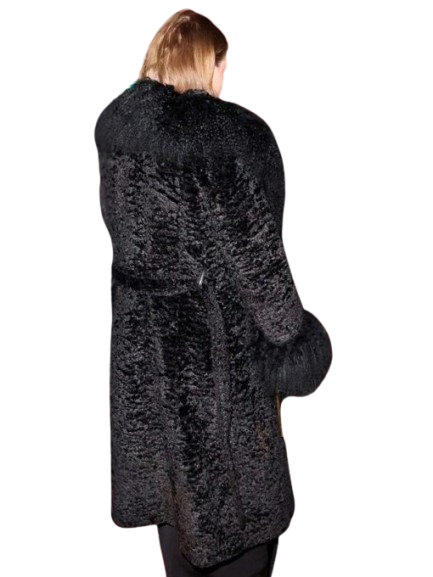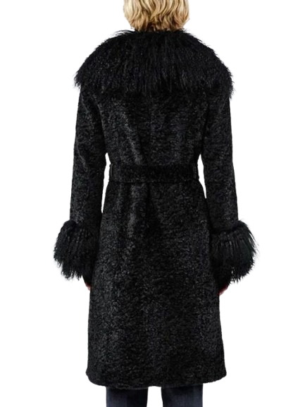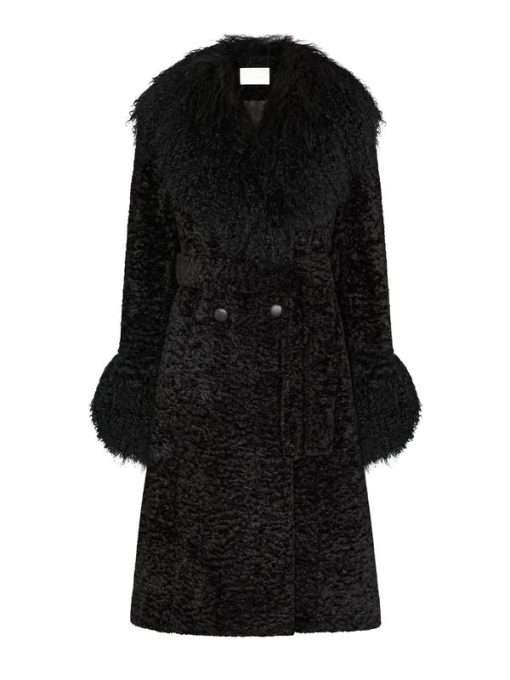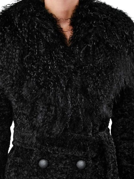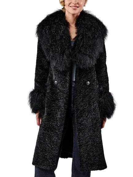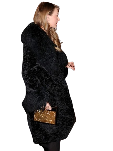 Velvro Leather – VL-300 Taylor Swift Charlotte Simone Black Faux Fur Coat with Fast Shipping and 30 Days Easy Return Warranty.