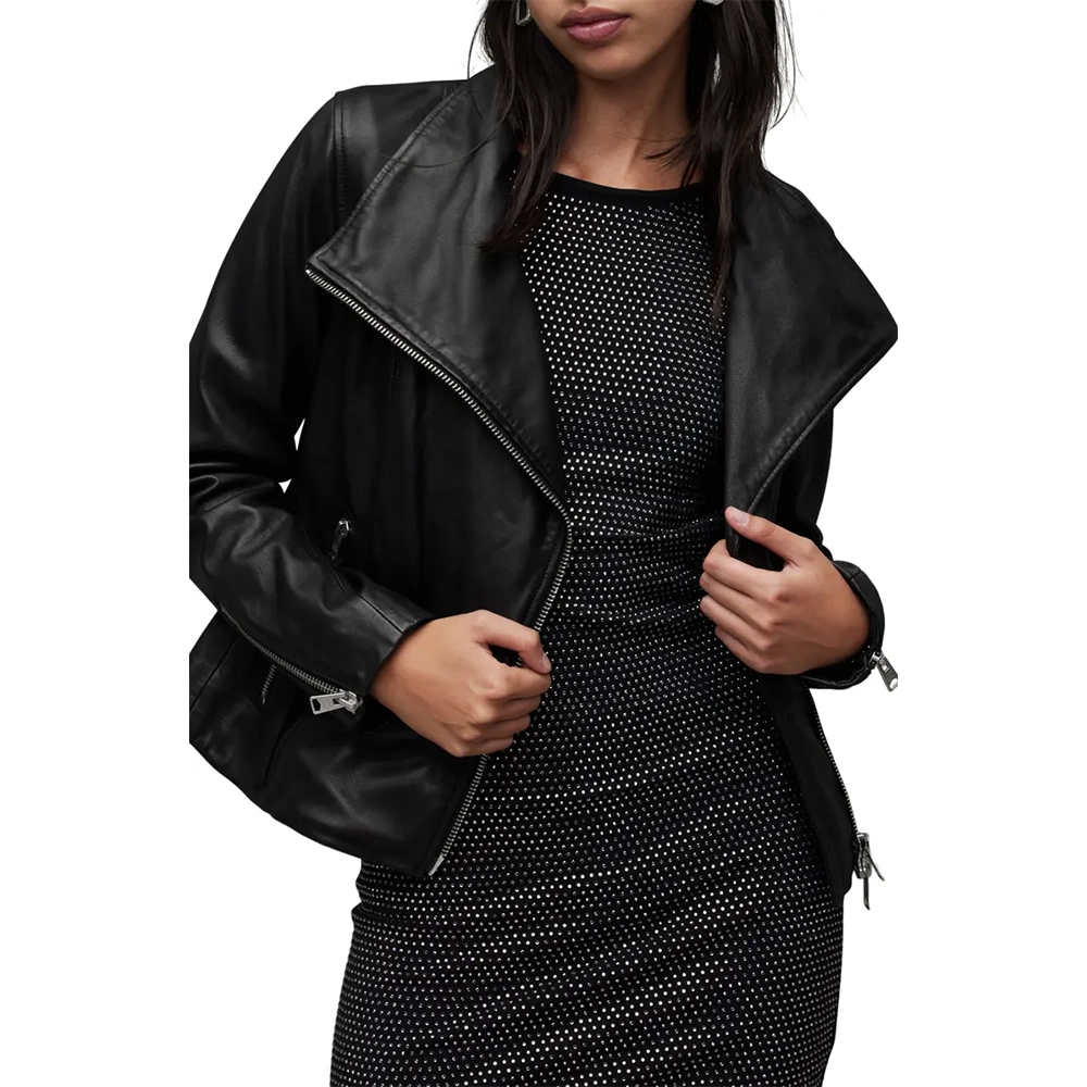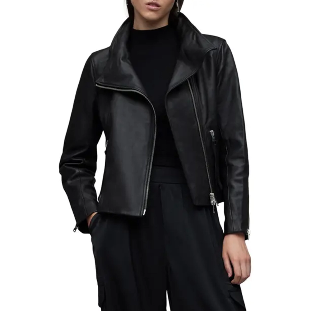 Velvro Leather – VL-112 Women’s Black Biker Leather Jacket with Fast Shipping and 30 Days Easy Return Warranty.