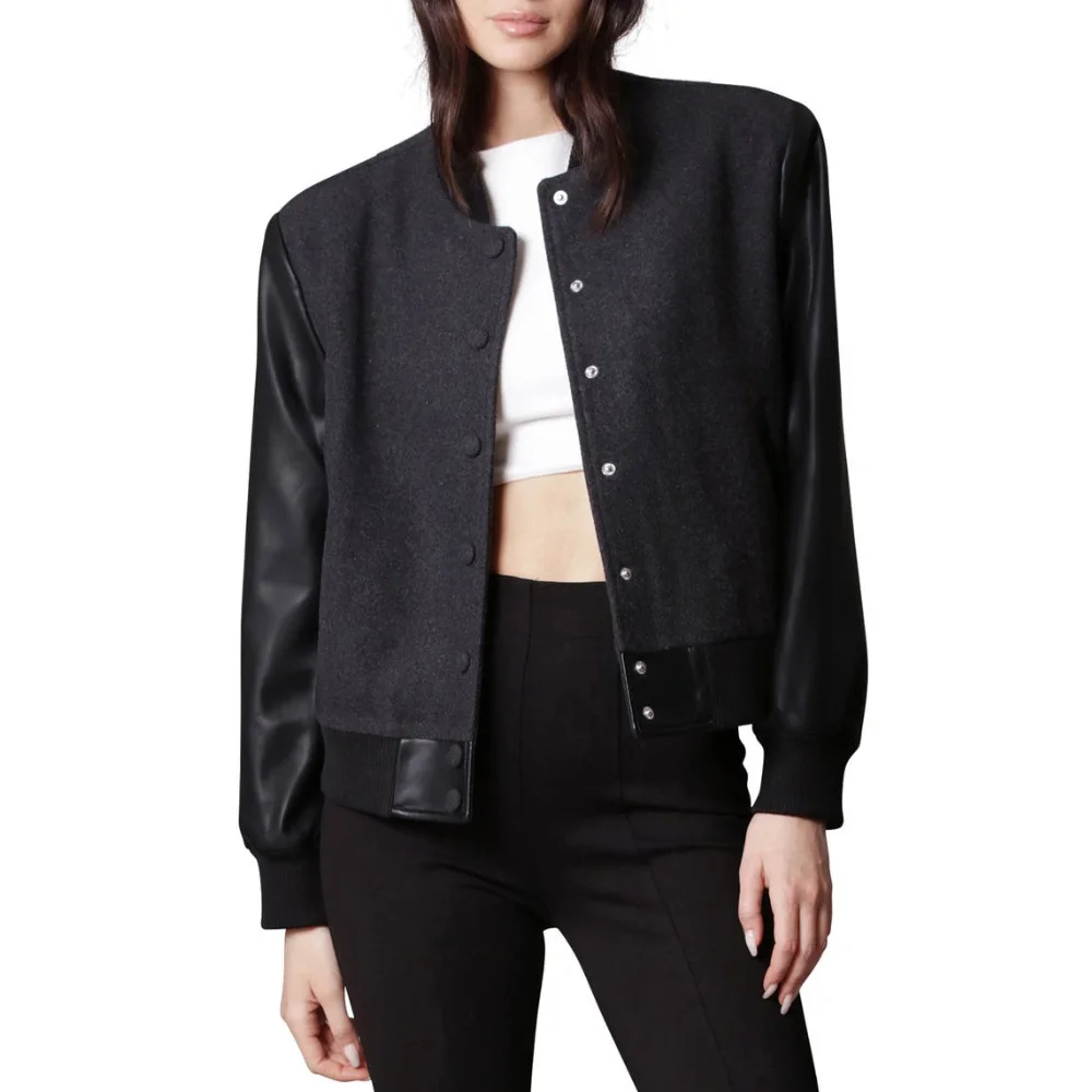 Velvro Leather – VL-092 Women’s Black Letterman Varsity Jacket With Leather Sleeves with Fast Shipping and 30 Days Easy Return Warranty.