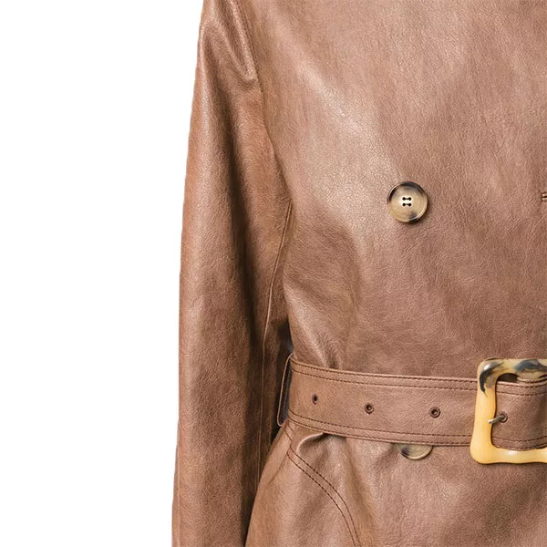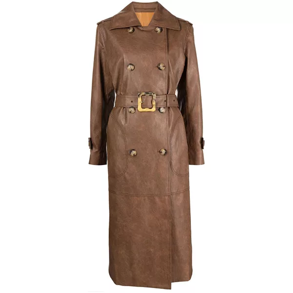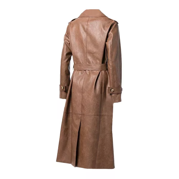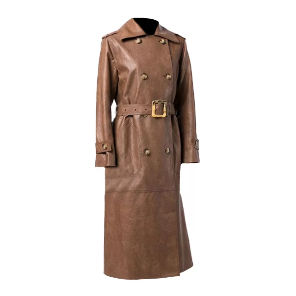 Our Women’s Brown Double-Breasted Military Trench Coat, made from real cowhide leather for a rich texture and long-lasting appeal, will let you step into sleek, assertive style. A structured, contemporary silhouette is created by the belted waist, double-breasted front with buttoned fastening, and traditional collar. The soft inner lining keeps you cozy on chilly days. It’s an item that looks good day or night because to its eye-catching brown color and fitted style. To preserve the leather’s superior quality, lightly wipe it down with a moist cloth, condition it occasionally, and avoid machine cleaning. Now claim it as your own. Explore check-out our extensive collection of Women’s Coats according to your style and fit.