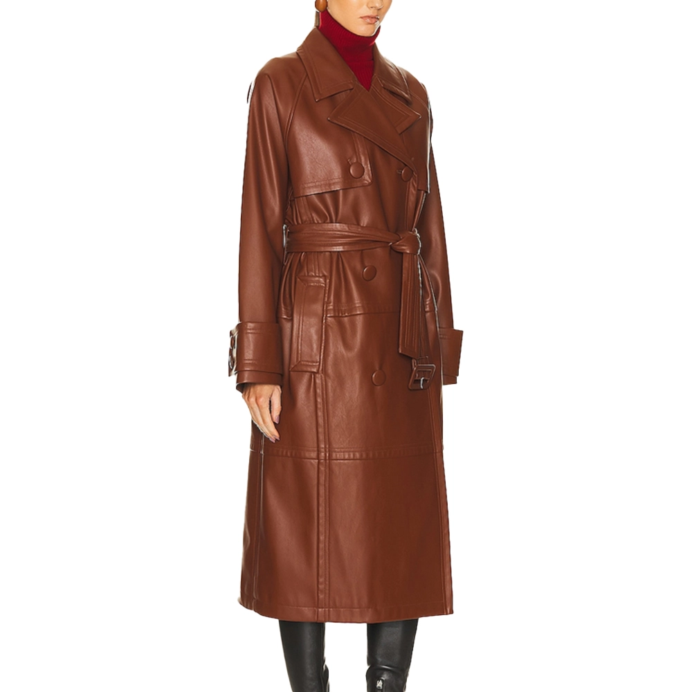 Velvro Leather – VL-052 Women’s Brown Leather Long Trench Coat with Fast Shipping and 30 Days Easy Return Warranty.