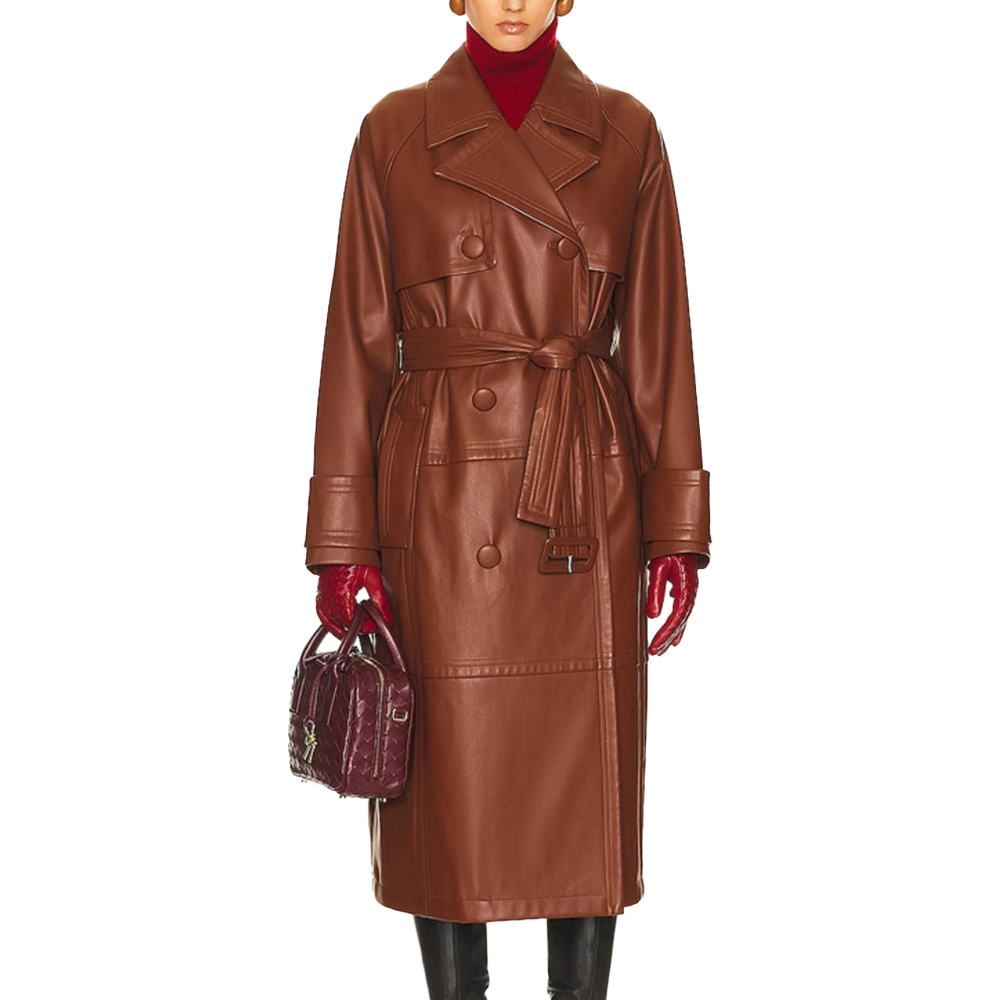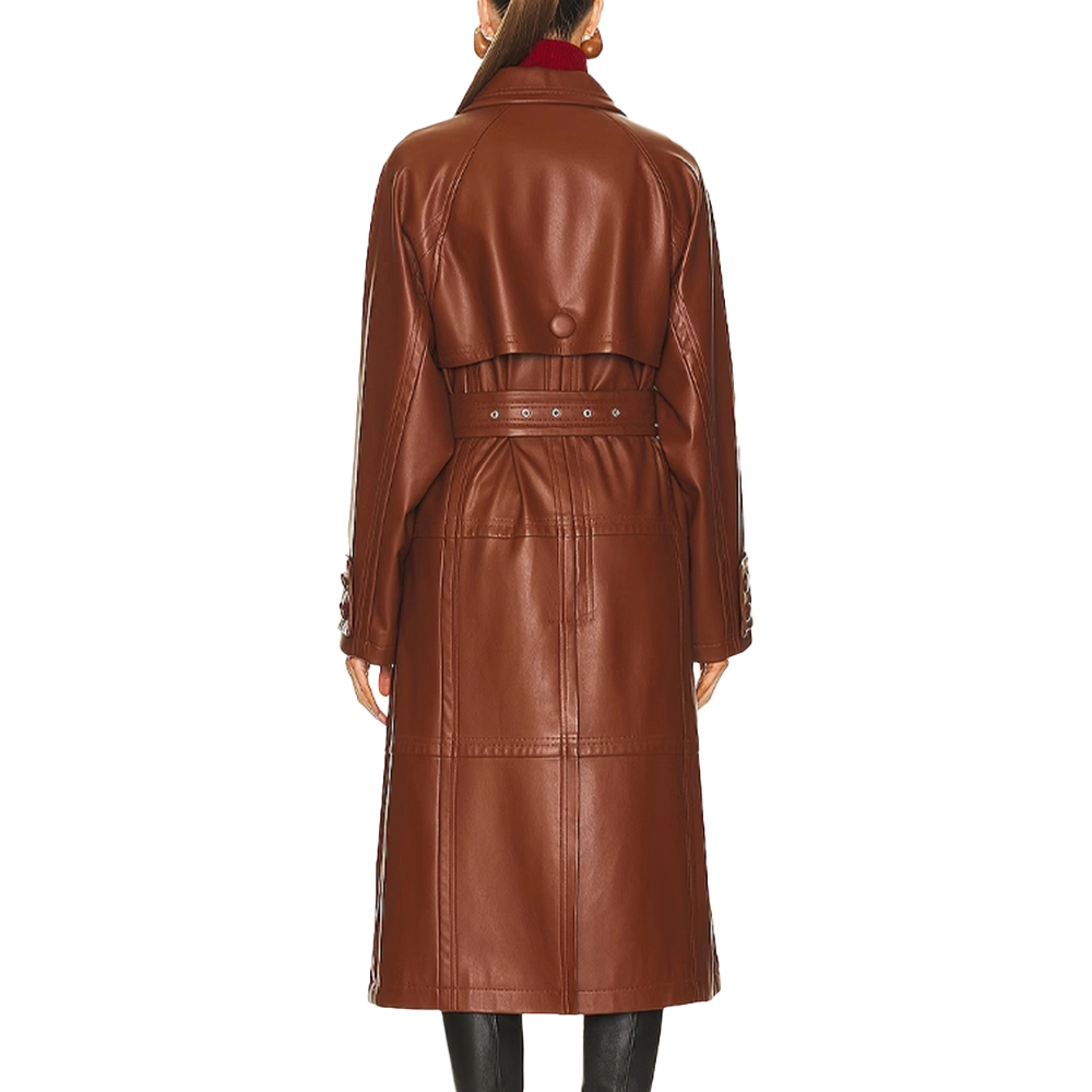 Women’s Brown Leather Long Trench Coat