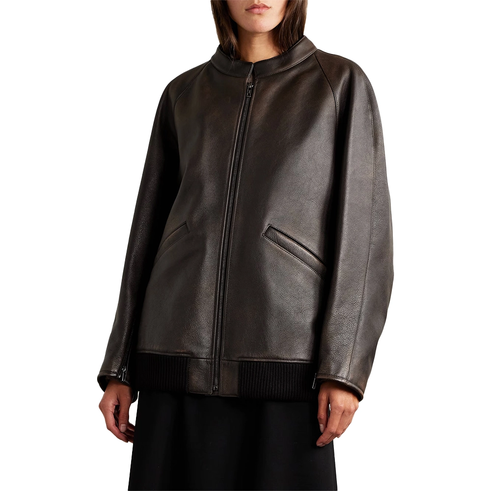 Velvro Leather – VL-161 Women’s Distressed Brown Leather Bomber Jacket with Fast Shipping and 30 Days Easy Return Warranty.