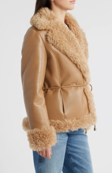 Wrap yourself in comforting comfort with this Women’s Faux Shearling Wrap Jacket – a soft, elegant covering suitable for chilly days. Made from 100% polyurethane faux shearling, it features casual notched lapels, a front snap closure, and side-seam pockets for utility. You can opt for a more tailored appearance or a loose drape thanks to the detachable string tie. Easy care makes it even better: just machine wash and tumble dry. This wrap coat is a simple choice whenever you want warmth and a laid-back, stylish feeling because of its soft feel and carefree look. Don’t forget to check-out our Women’s Shearling Jackets with premium quality without premium pricing