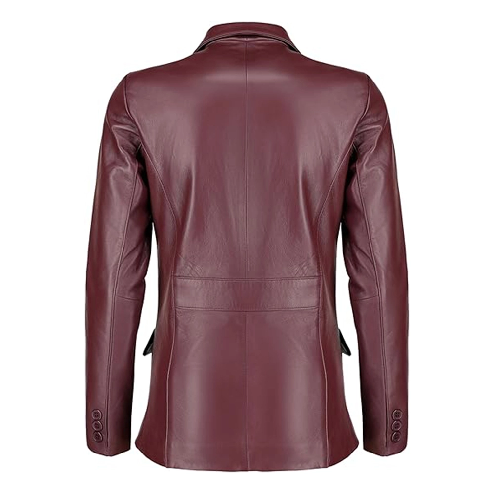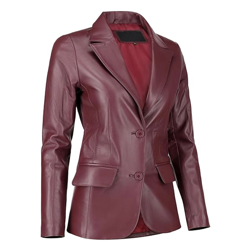 Velvro Leather – VL-079 Women’s Maroon Two Button Leather Blazer with Fast Shipping and 30 Days Easy Return Warranty.