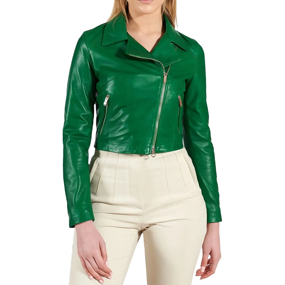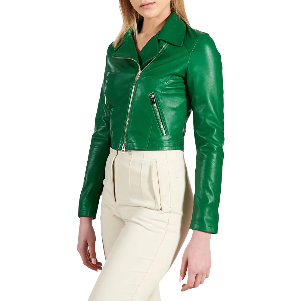 Velvro Leather – VL-127 Short Women’s Short Leather Jacket Green with Fast Shipping and 30 Days Easy Return Warranty.